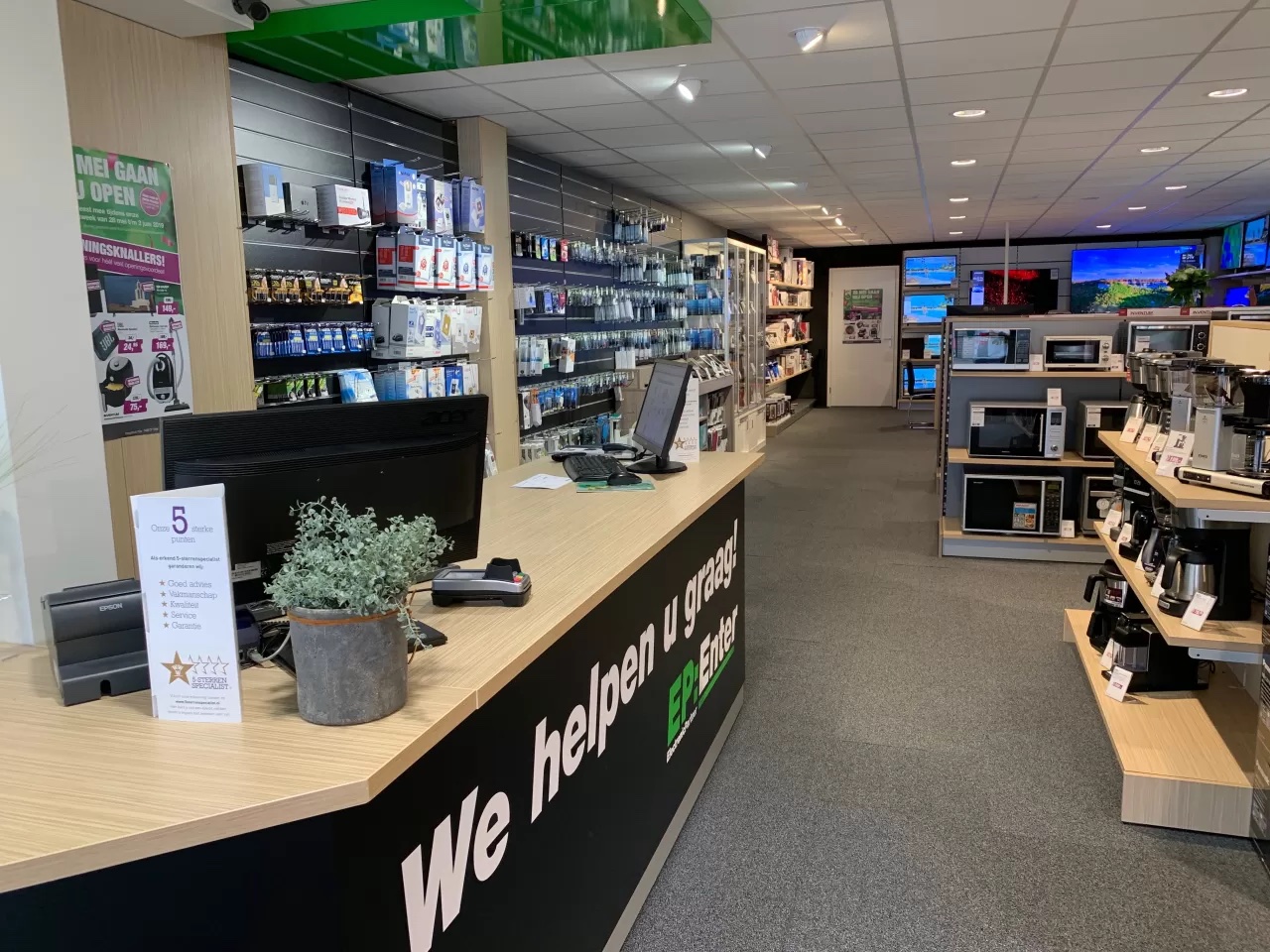 De service van EP:Enter maakt het verschil. Naast hun uitgebreide assortiment en vakkundige personeel, hebben ze ook een webshop met eigen bezorgdienst. Daarnaast beschikken ze over veel technische vakkennis dus kan men er ook goed terecht voor reparatie.